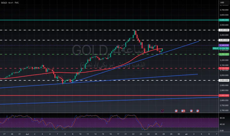 دعم مهم عند 3,260 دولار للأونصة.