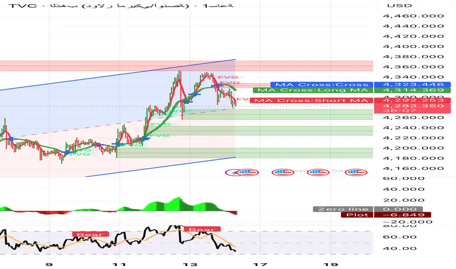 • التداول أسفل منطقة تكدّس متوسطات (4300±) يؤكد ضعف الزخم الصاعد.
