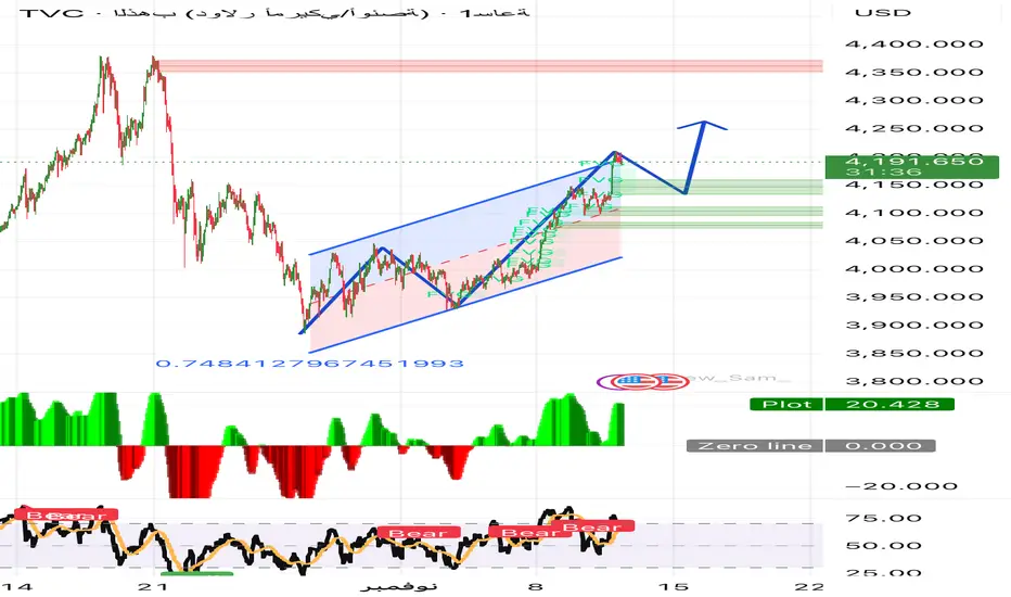 السعر الآن داخل منطقة عرض قوية جداً بين 4170 – 4200، وهي منطقة شهدت سابقاً انعكاسات قوية.