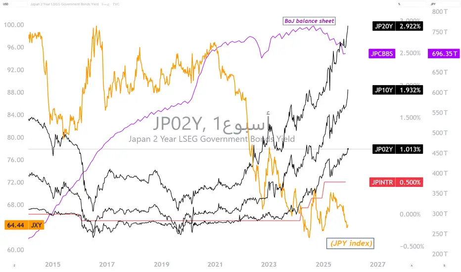 لكن هذا المحرّك بدأ يتباطأ. فقد بدأ بنك اليابان في رفع أسعار الفائدة، كما تعزز الين، ما زاد تكلفة الاقتراض بالين وقلّص هامش الربح في تجارة الكاري. وفي ظل هذا الوضع، بدأ كثير من المستثمرين بالفعل في تفكيك مراكزهم، إذ ارتفعت عوائد السندات اليابانية بشكل واضح منذ عام 2024، كما يظهر في الرسم البياني التالي: