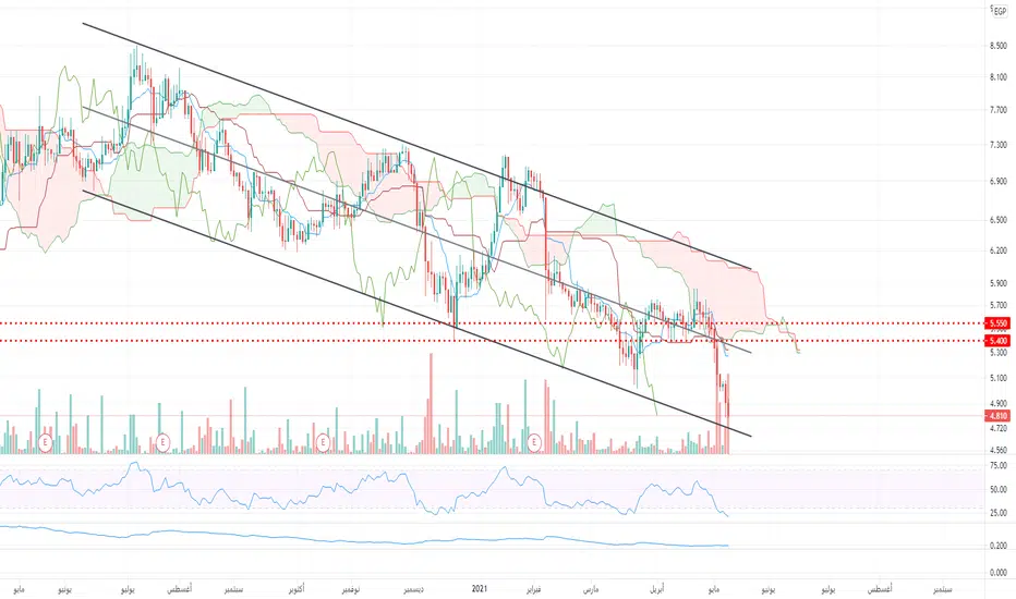 السهم طوال تلك الحركة الهابطة يتداول داخل قناة هابطة وهي تتسم بموجات صاعدة سريعة ونعتقد انه مقبل على احداها الاسبوع القادم