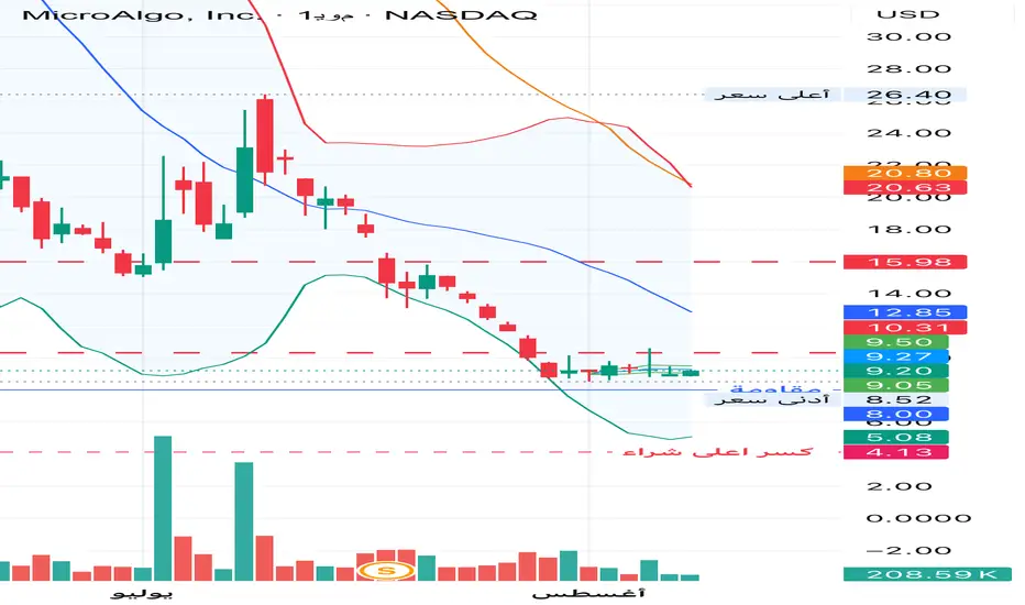 البولينجر ضاق، وغالباً هذي إشارة إن فيه حركة قوية جاية، أهم شي نراقب الاختراق أو الكسر مع الفوليوم