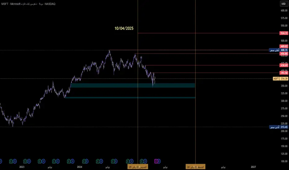 كسر دون 350 دولار سيُفتح المجال لهبوط إضافي نحو المنطقة الثانية حول 325–300 دولار.