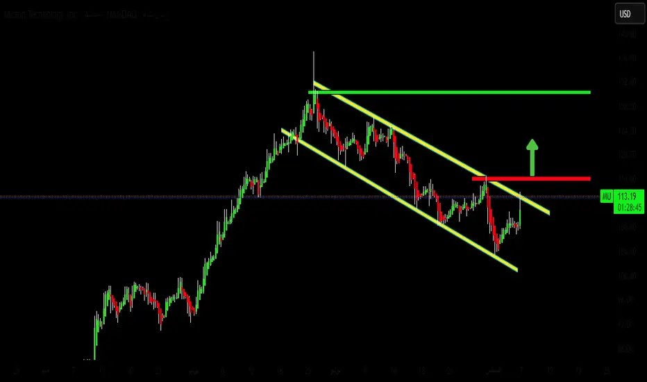 اختراق آخر قمة هابطة داخل النموذج 116 هي إشارة فنية مؤكدة تُشير إلى كسر هيكل الاتجاه الهابط الفرعي وبداية موجة اندفاع صعودية جديدة المستهدف الاول هو قمة النموذج عند مستويات 130