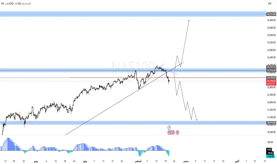 في المقابل، إذا نجح المؤشر في الصعود والثبات فوق مستوى 23,712.25، فقد يشهد السوق سلسلة ارتفاعات جديدة تمتد لتصل إلى مستوى 26,733.84، ما يفتح المجال أمام تحركات صعودية قوية، خاصة في قطاع التكنولوجيا الذي يمثل الجزء الأكبر من المؤشر.