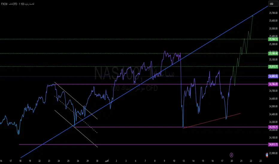ثبات السعر فوق 24,850 → اختراق 25,013 → موجة صعود باتجاه 25,366 ثم 25,700.