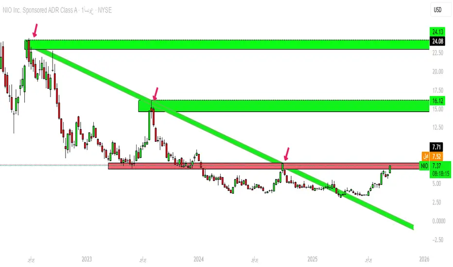 سهم NIO يعكس بداية انتعاش بعد فترة هبوط طويلة، والارتفاع الأخير يظهر اهتمام المستثمرين المتزايد بالقطاع. متابعة مستوى 7.71 دولار والمستويات التالية ستحدد مسار الانفراج السعري القادم، ما يجعل السهم فرصة جدية للمتابعة والمراقبة في ظل نمو قطاع السيارات الكهربائية المستقبلي.