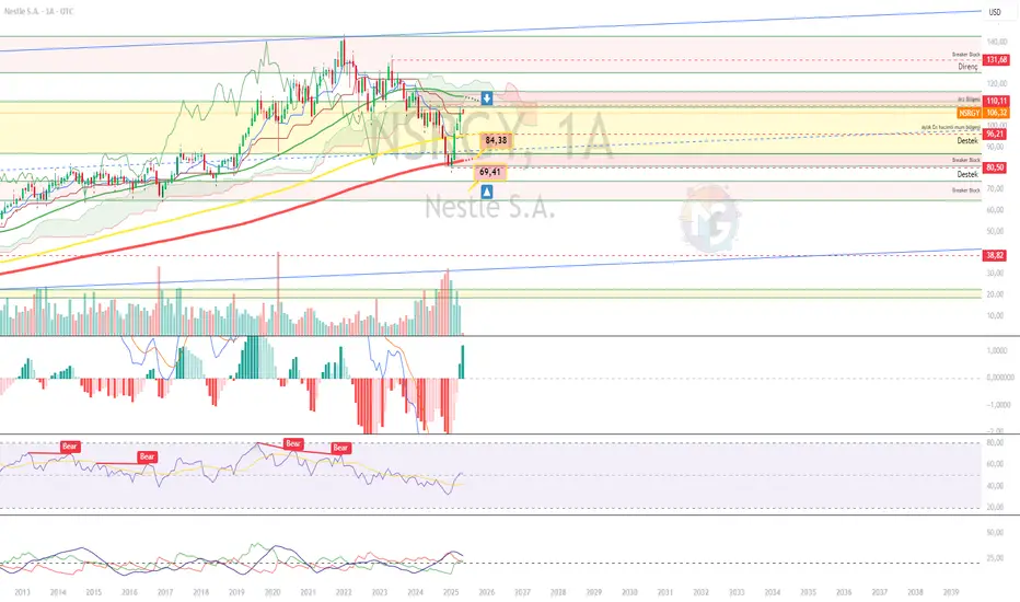 Aylık olarak bakıldığında bakıldığında düşüş trendine girmiş görünen hisse senedi hareketine 118 bölgesinden aldığı tepki ile başlamış görünüyor. Hisse satış yaşadığı ay Ocak 2024 ayı olup bu bölgeden başlayan düşüşün 78,60 oı olan kısmını geri vermiş. 110 bölgesinden tepki almış görünüyor. 77 bölgesine düşüş yaşayan hissenin hedefi talep bölgesi olan 69 bölgesine tekrar yönelebilir. Analiz Aylık olduğu için uzun vadelidir. Ancak uzun vade de düşüş trendinde hareket gerçekleştirebilir.