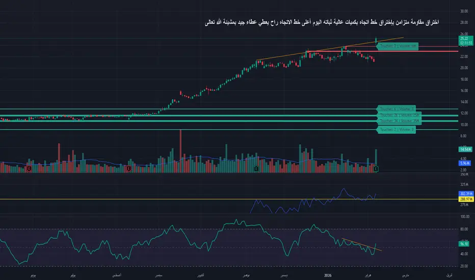 ما نشاهدة اليوم بإختراق مناطق مهمه بأحجام غير عادية يعزز ويقوي الاختراق حيث ان السهم يتزامن بإختراقه الفني اخبار ايجابية