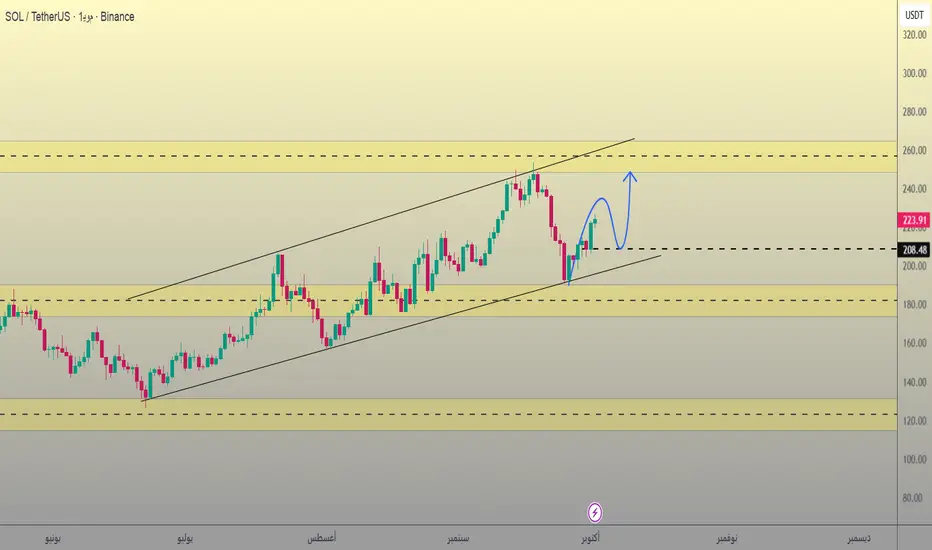 على الرسم البياني، تحافظ SOL على الاتجاه الصعودي الثابت في قناة سعرية صاعدة، مدعومة بخط الاتجاه. السعر الحالي يقترب من منطقة الهدف عند 248 دولارًا. إذا استمر هذا الاتجاه، فقد تصل SOL إلى 248 دولارًا في الفترة القادمة.