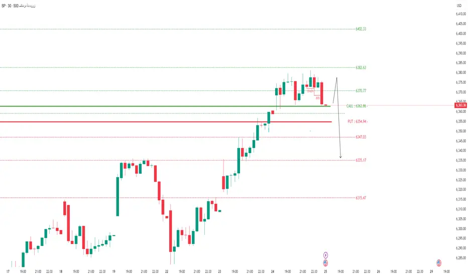 تحليل سريع ومفصل لمؤشر (SPX). بعد ملاحظة كسر هيكل السوق (BOS)، الله اعلم اليوم فرصة PUT محتملة جدا بشرط عدم افتتاحه فوق 6383