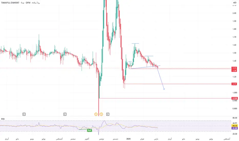 يتفعل النموذج في حال كسر مستوى الدعم عند 1.30