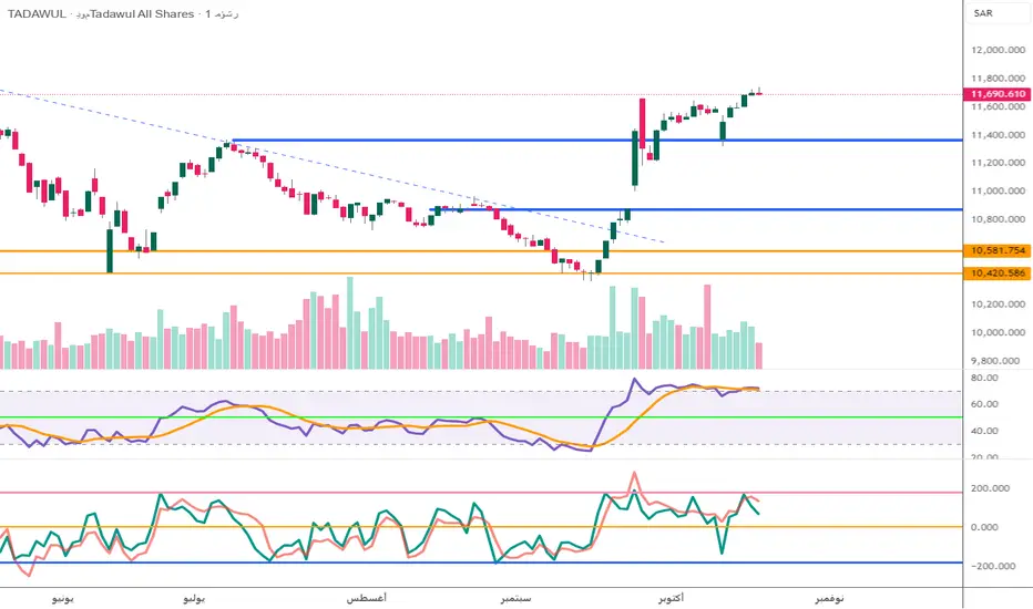 الأهداف : 11360 اولا ثم نرى ماذا سيحدث عندها وان لم يرتد فسيستهدف الهدف الثاني: 10880