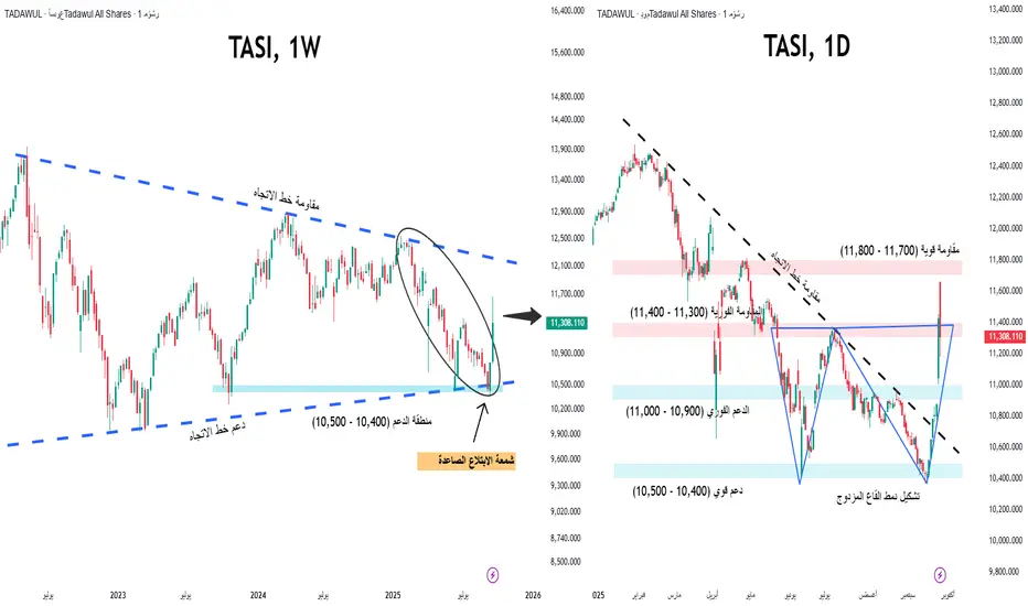 ● الاختراق الرئيسي: نجح المؤشر في تجاوز منطقة المقاومة عند 11,000، مما يضع السوق بشكل واضح في منطقة صعودية.