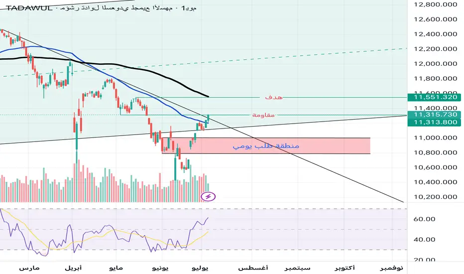 على فاصل اليوم فإن المؤشر العام إيجابي بعد أن اخترق خط الترند الهابط، ويقف الآن عند مقاومة تتمثل في 11315، وفي حال اجتازها فسيتجه نحو الهدف المحدد 11551، مع احتمالية ضعيفة أن ينزل المؤشر نحو منطقة الطلب.