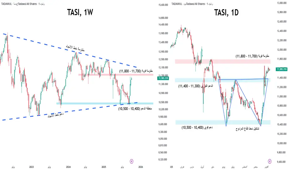 مع ذلك، يبدو أن المؤشر يفقد زخمه حاليًا، ويواجه صعوبة في اختراقه. ومن المرجح حدوث استقرار أو تراجع قصير الأجل نحو مستوى الدعم 11,300-11,400 نقطة قبل استئناف أي حركة صعودية قوية.