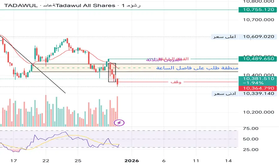 على فاصل الساعة فالاتجاه العام: السوق هابط على الفاصل الزمني للساعة؛ وظهور نموذج الغربان الثلاثة يؤكد ضغطًا بيعيًا مستمرًا 🐦⬇️.