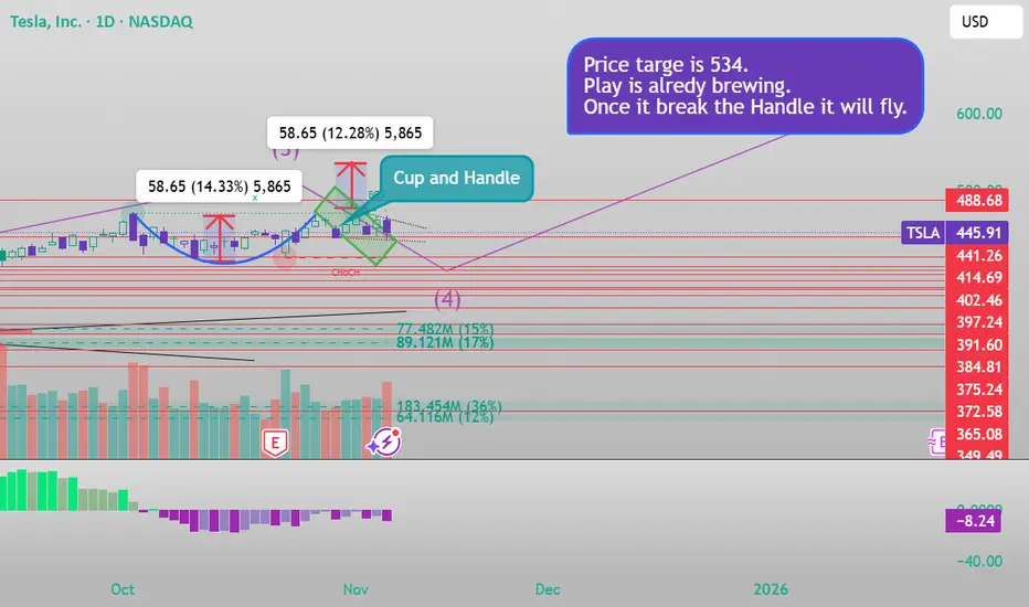You can see the cup and Handle in the Daily timeframe. It Will fly soon. My price target is 534 once it break the handle. You see this here at first.