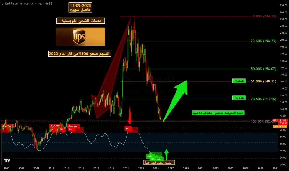 📊 التحليل الفني لسهم UPS (NYSE:UPS) — فاصل شهري