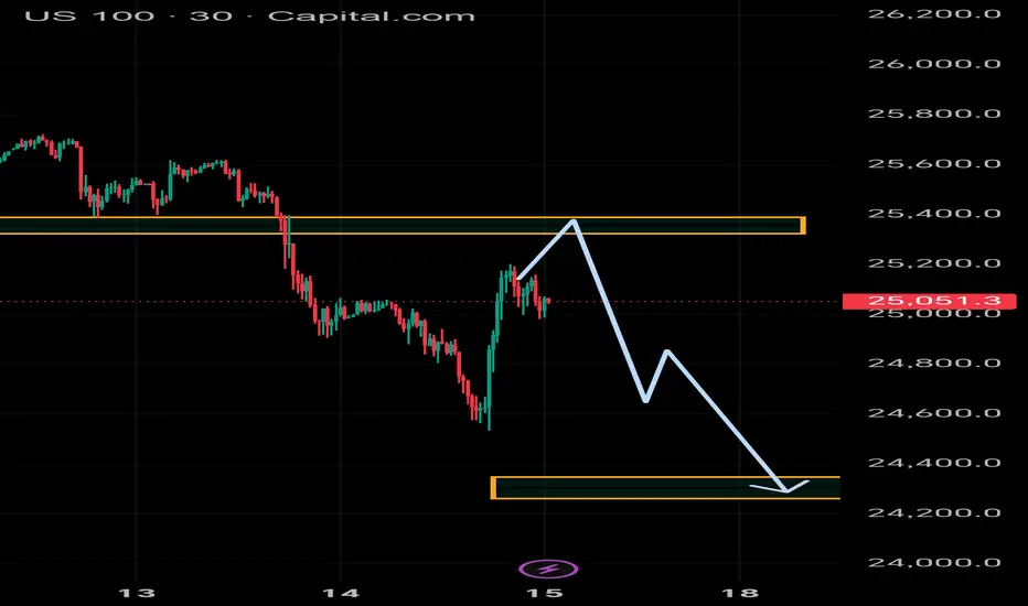 تحلييل مؤشر ناسداك تحت ضغط بيعي في حال لم يكسر مستويات 25400 إذا كسر هذا مستويات نشهد موجه صعودي