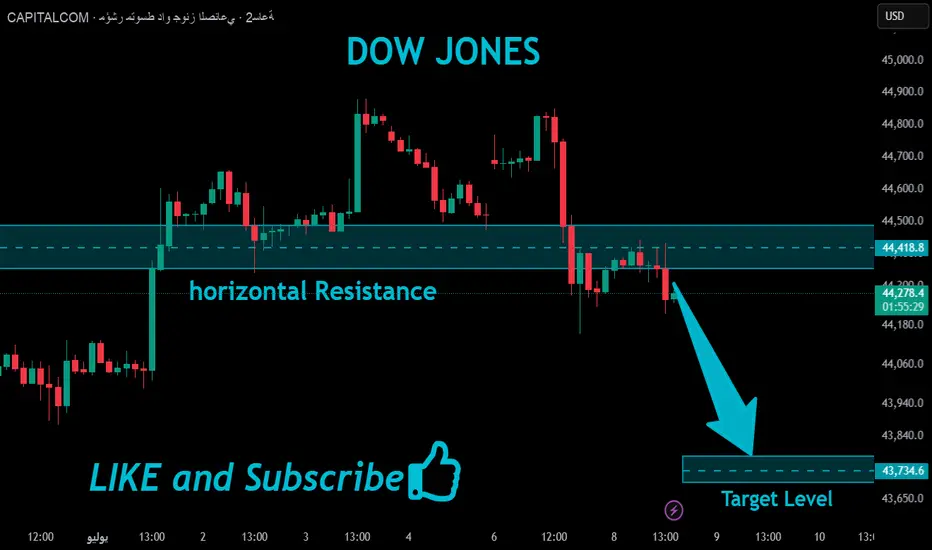المقاومة الأفقي الرئيسي عند 44418.8.