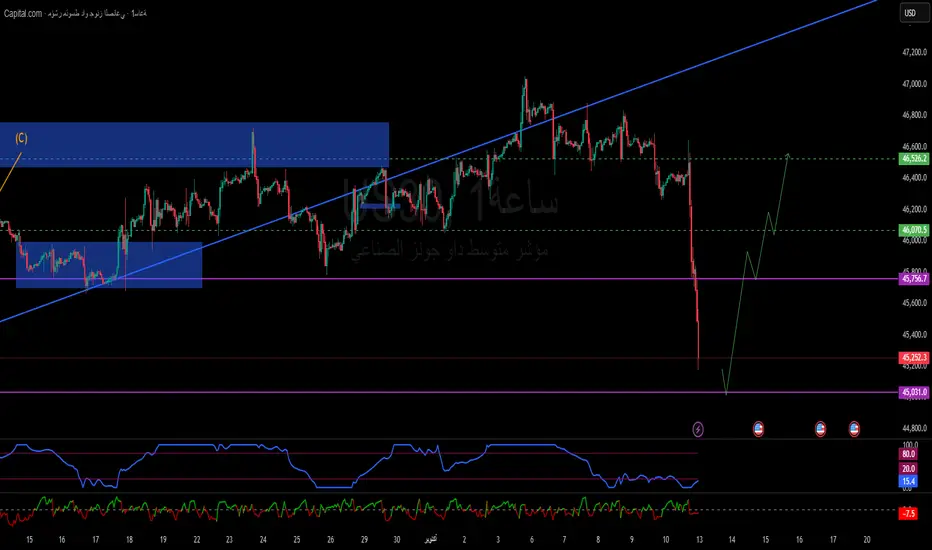 ارتداد واضح من منطقة Discount يؤكد بداية موجة انعكاس تمتد نحو 46,000 ثم 46,500.