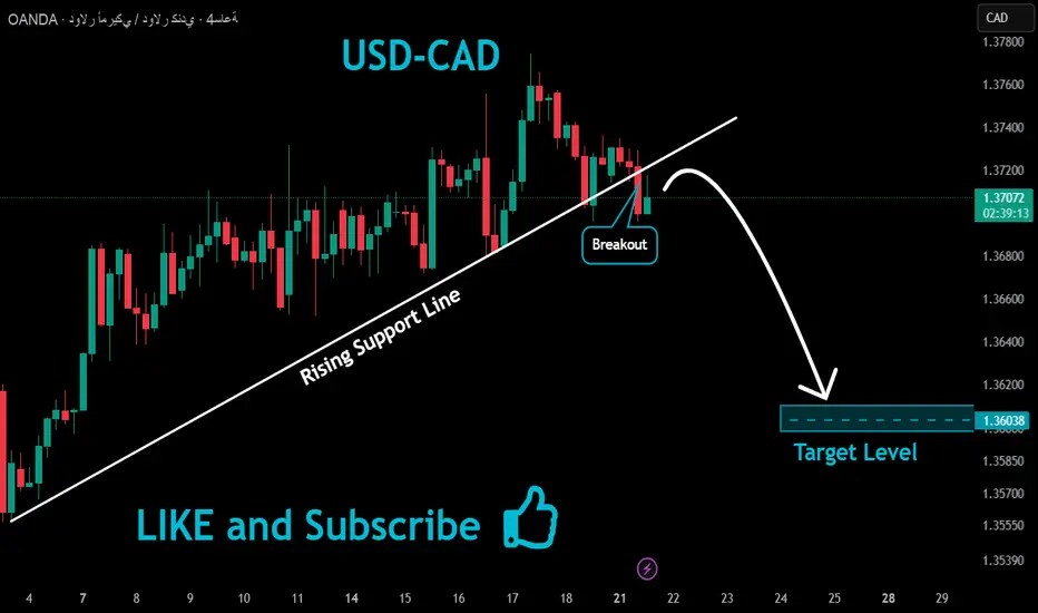 كان زوج #USDCAD يتداول على طول خط الدعم الصاعد،
