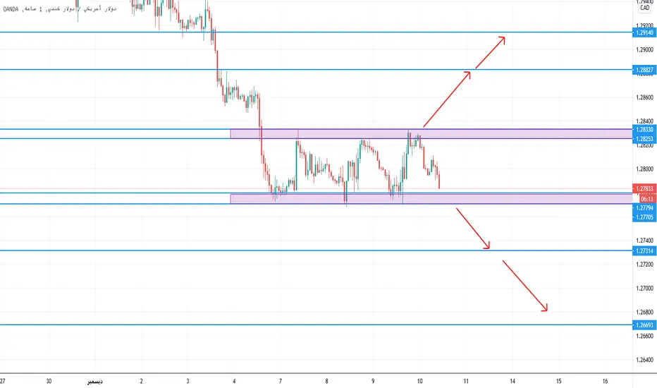 من الملاحظ ان الدولار كندي الان يتجه اتجاه عرضي بين مستويات 1.2835 و 1.2770