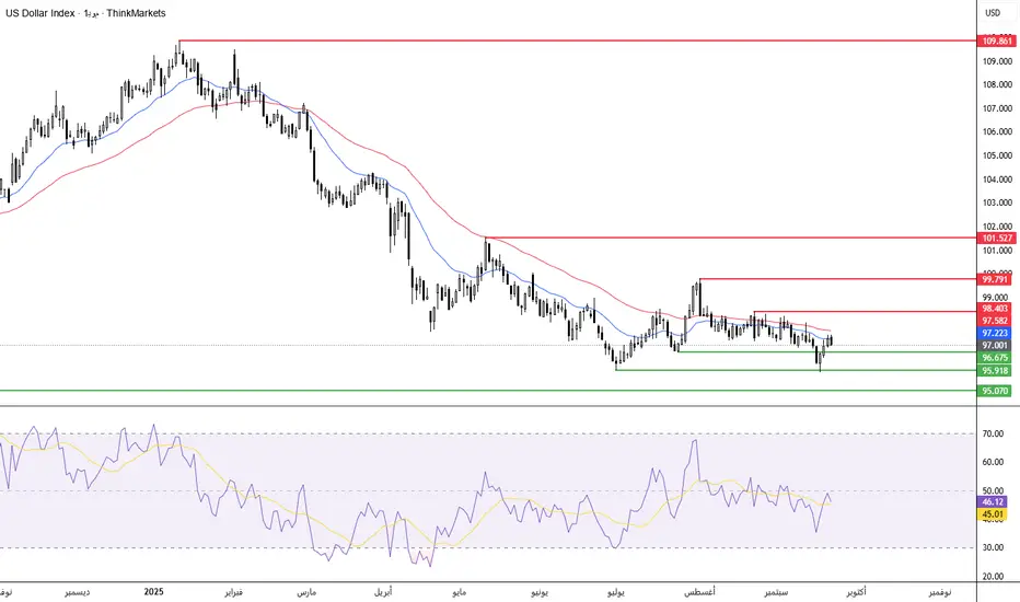مؤشر الدولار الأمريكي (US Dollar Index - DXY)، كما تابعنا الأسبوع الماضي، وبعد قرار الفيدرالي الأمريكي بتخفيض الفائدة إلى 4.25%، فقد وصل المؤشر إلى المستهدف المذكور في التقرير السابق عند مستوى 95.918 قبل أن يرتد صعودًا مرة أخرى ويدخل في نطاق التحركات العرضية أعلى 96.675.