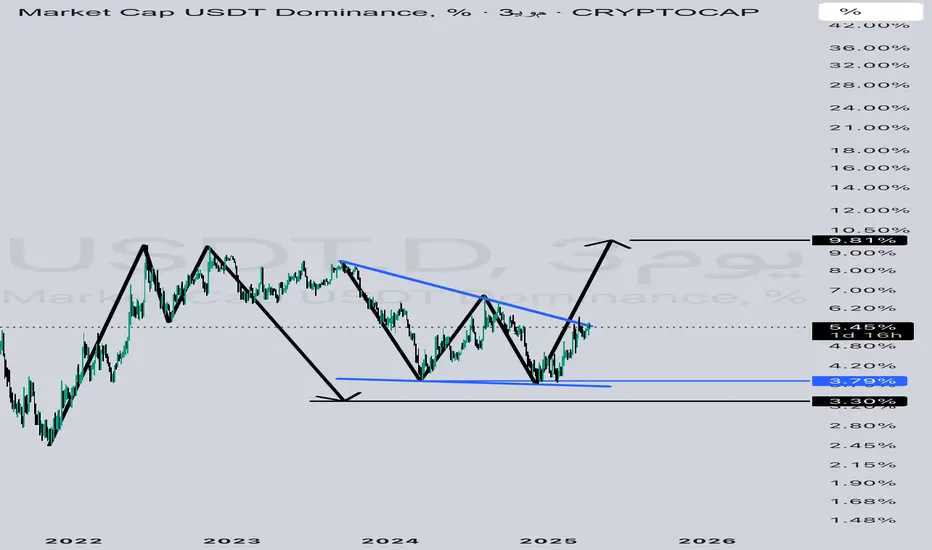 USD.D كان لدينا دبل قمه وهبط بعدها إلى قريب المستهدف و كون لدينا نموذج دبل قاع و وتد هابط يستهدفون نفس المنطقه