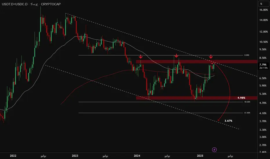 🔸 استمرار المسار الهابط قد يدفع الهيمنة نحو 4.98% ثم 3.67%.