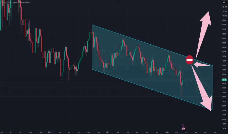 النفط لشراء و هو متجه الى قمه القناه الهابطه و متوسط 200 على الفريم الاسبوعي عند 70-73 دولار و مع اختراق القناه الهابطه يعلن عن بدا قناه صاعده جديده الى 100 دولار عدم المقدرة على الاختراق يعود ليسحل رقم القناه الهابطه الجديده عند 45 دولار الان هو لشراء و على اقل تقدير متجه الى 70 دولار تداول بحكمه نحلى بصبر
