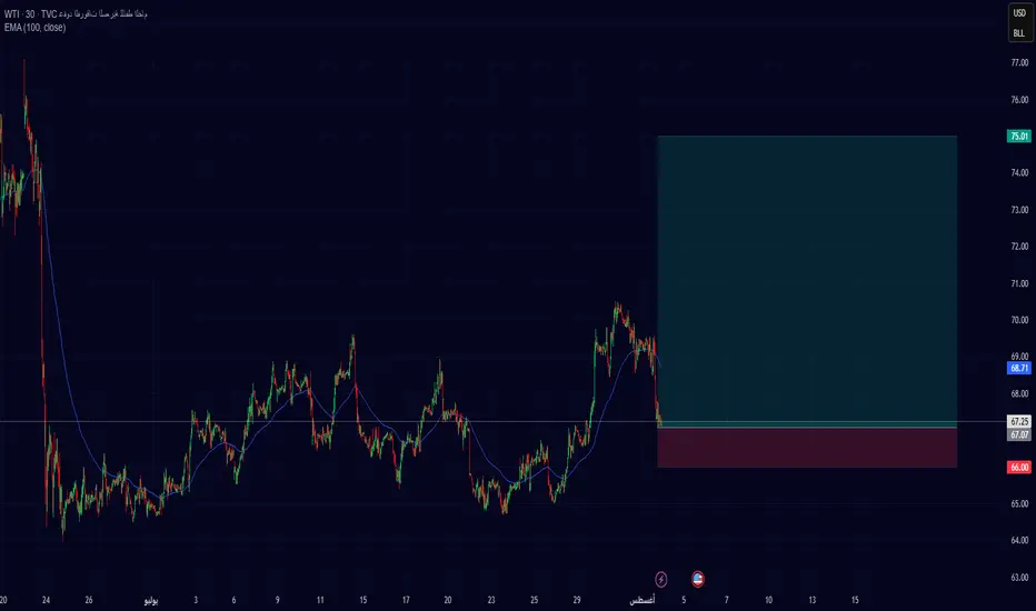 الزخم يتصاعد، والسيولة تعود تدريجيًا، مع إشارات على استنفاد الضغوط البيعية. القاع الأخير عند 66.00 يُعتبر "نقطة حماية" لهذه الصفقة.