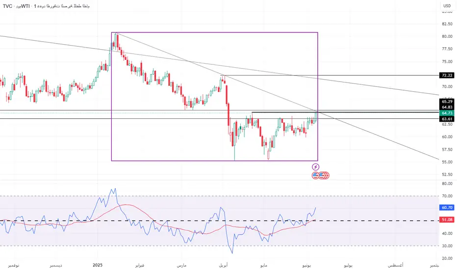 هل يخترق النفط على المدى القصير 65.29$ ويتجه الى 72$ والتراجع منها الى المسار الهابط الرئيسي على الاسبوعي نتابع هذا الاسبوع ونرى الى اين نتجه بإذن الله