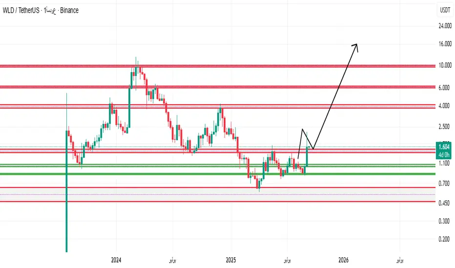 بناءً على تحليل شارت عملة WLD/USDT، إليك التحليل المبسط: