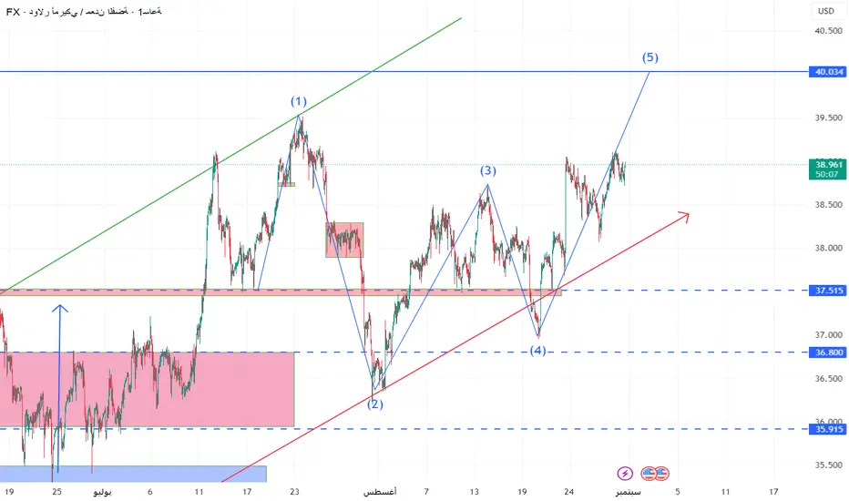 5️⃣ الموجة 5 (الحالية): موجة صاعدة محتملة تستهدف منطقة 39.90 – 40.50.