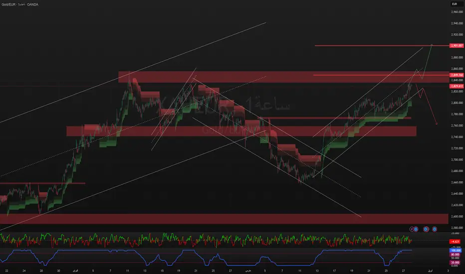 بعد الوصول إلى 2,901، إما تصحيح بسيط وإعادة انطلاق، أو تشكل قمة مزدوجة تُمهّد لهبوط تصحيحي.
