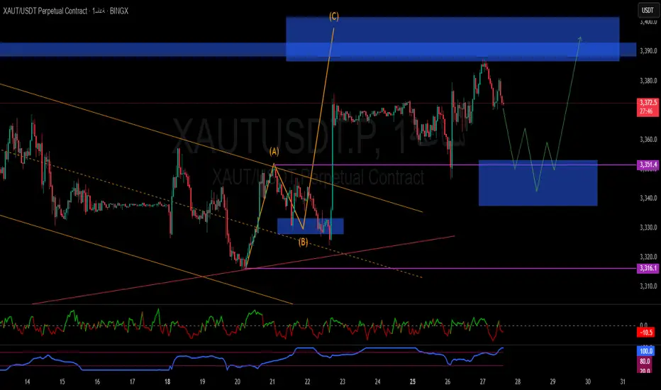 أنا لا ألاحق الذهب؛ أضع له القفص ثم أفتح بابه عند الإشارة. فوق 3,390 طريق التعافي حتى 3,430/3,445… وتحت 3,351 يبدأ مسار 3,316–3,300.