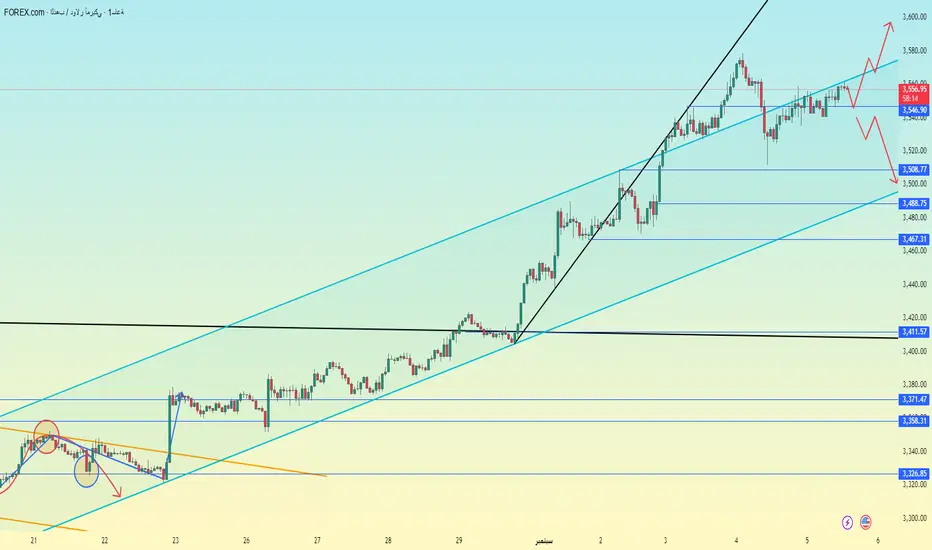إذا اخترق السعر مستوى 3563 وحافظ على استقراره، أنصحك أيضًا بالدخول بمركز صغير، ووضع أمر إيقاف خسارة تحت 3555، واستهداف 3585-3600.