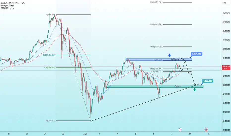 يواصل السوق تشكيل هيكل قمم أعلى (Higher High) وقيعان أعلى (Higher Low)، مما يعزز السيناريو الذي يشير إلى إمكانية امتداد الحركة الصاعدة نحو منطقة المقاومة الرئيسية التالية قرب مستوى 5100.