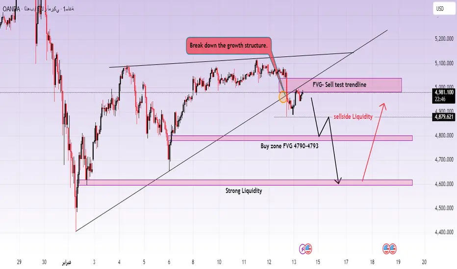 إذا سحب السعر السيولة حول 4,790 وأظهر رد فعل قوي صاعد، قد يكون هناك انتعاش نحو 4,900–5,000. ومع ذلك، سيظل هذا تصحيحيًا ما لم يتم استعادة 5,020 بشكل حاسم.