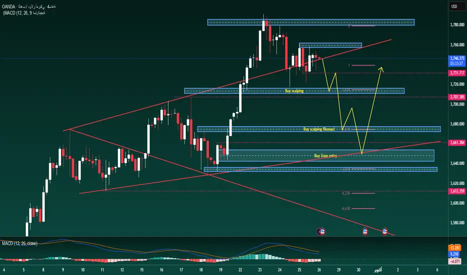 في الأجل القصير، يستمر تفضيل سيناريو الهبوط، خاصة عندما يبقى السعر تحت منطقة 3748.