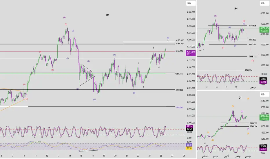 ومع صعود زخم H4، قد نشاهد دفعة صاعدة إضافية أو حركة عرضية صاعدة خفيفة لإكمال الموجة C.