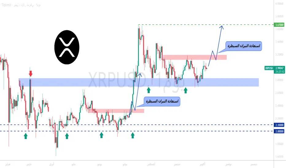 السيناريو الأساسي: طالما حافظ السعر على المنطقة الزرقاء، فالأرجح اختبار منطقة العرض 3.15–3.25. إغلاق يومي أعلى 3.25 يدعم امتداد الحركة نحو 3.67 (الهدف المرسوم).