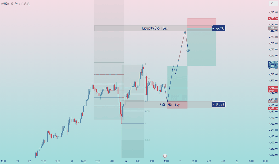 XAU/USD: شراء عند FVG + Fibo، ترقب للبيع فوق السيولة◆ سياق السوق (M30)