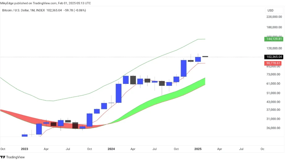 The January monthly close has provided a bullish outlook for the Bitcoin price. In an X post, crypto analyst Mikybull Crypto noted that the good monthly close has invalidated the shooting star candle. He added that the cycle top is not in yet based on this. His accompanying chart showed that BTC could rally to $144,129 soon enough.