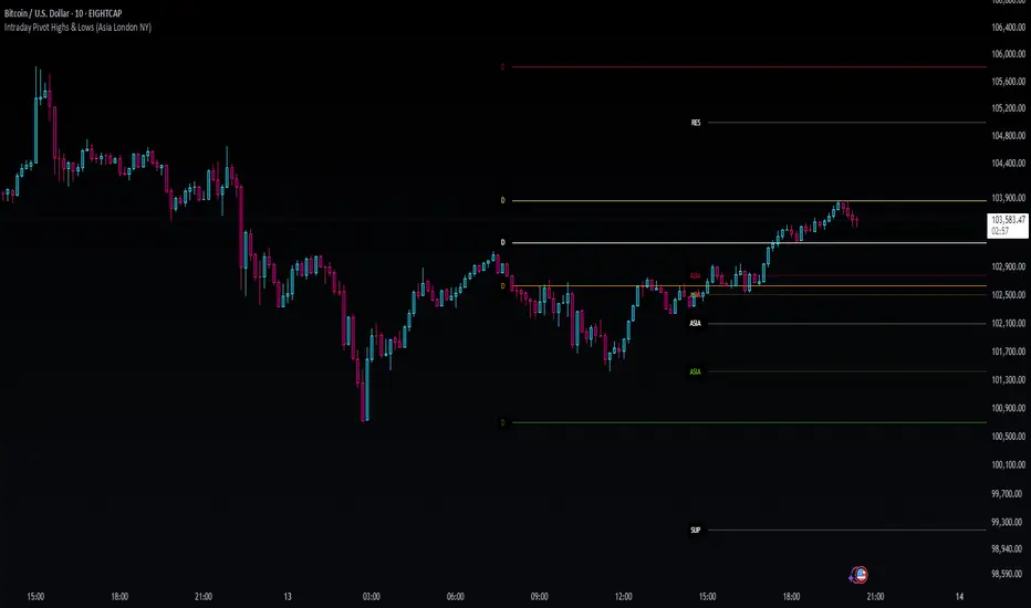 تم تحديثه Intraday Pivot Highs & Lows (Asia London NY)
