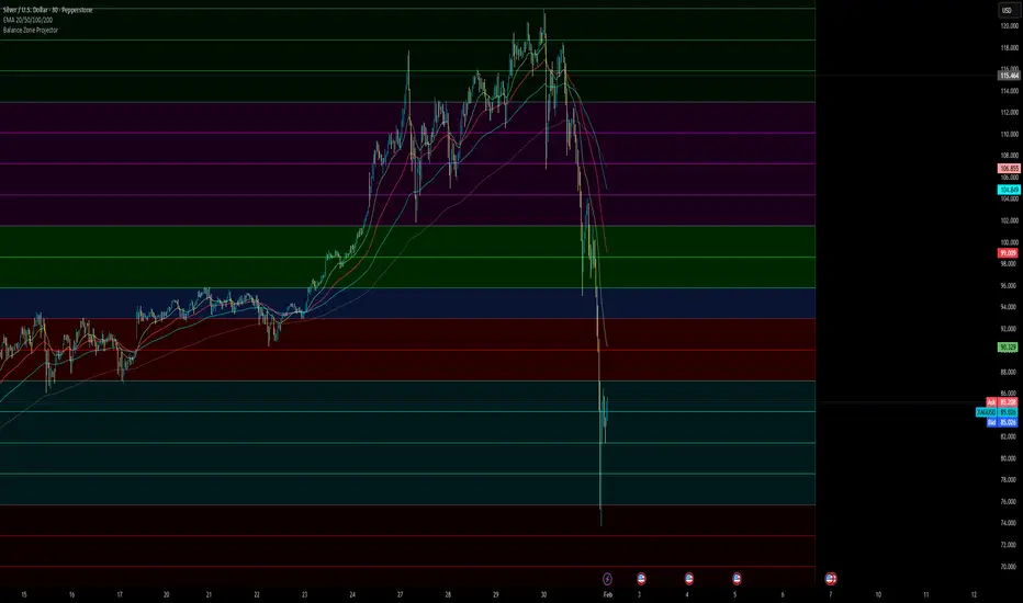 OVERVIEWProjects balance zones above and below up to 3 anchor zones. Each zone represents a 2x, 4x, 8x... multiple of the original anchor height, helping you identify key price levels for entries, exits, and targets.