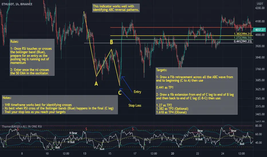 ALL IN ONE RSI is an indicator that i created to be used in trading the ABC patterns. i was inspired in creating this indicator by the famous TDI indicator. although at first you may think they are the same but when you open both of them you can easily spot the differences.This special relative strength index indicator includes the following: