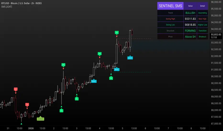 Sentinel Market Structure [JOAT] - Smart Money Structure Analysis